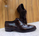 Brown leather upper adorned with leather tie as round shaped formal. Leather Lining on the inside with an all leather cushioned foot bed. Each pair is carefully hand crafted using finest techniques that symbolises the craftsmanship of our brand.