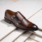 Super cool double monk shoe, with striking contemporary sophistication. The exemplary outline is given a cutting-edge curve with squared clasps and noticeable sewing on the toe. A thick adaptable layer of leather is sandwiched between the insole and sole, to make a cushion.