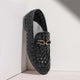 This stylish leather loafer, with its more limited shape, is the ideal shoe for work and relaxation time. Enhanced with an apparent woven leather, it is great for the modern gent.